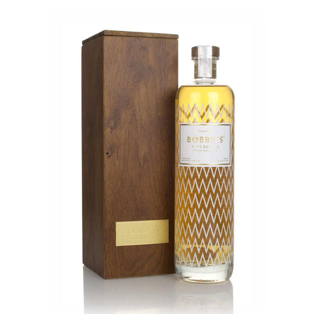 2019 feierte Bobby’s sein 5-jähriges Jubiläum. Um diesen Meilenstein zu feiern, wurde eine limitierte Sonderauflage herausgegeben. Als Basis diente die Notaris-Malzspiritus-Jenever-Charge aus dem Jahr 2014, dem Geburtsjahr von Bobby’s Schiedam Dry Gin. Dieser edle Brand wird in einer passenden Geschenkbox aus Holz angeboten und eignet sich hervorragend für Gin- und Jenevergenisser.