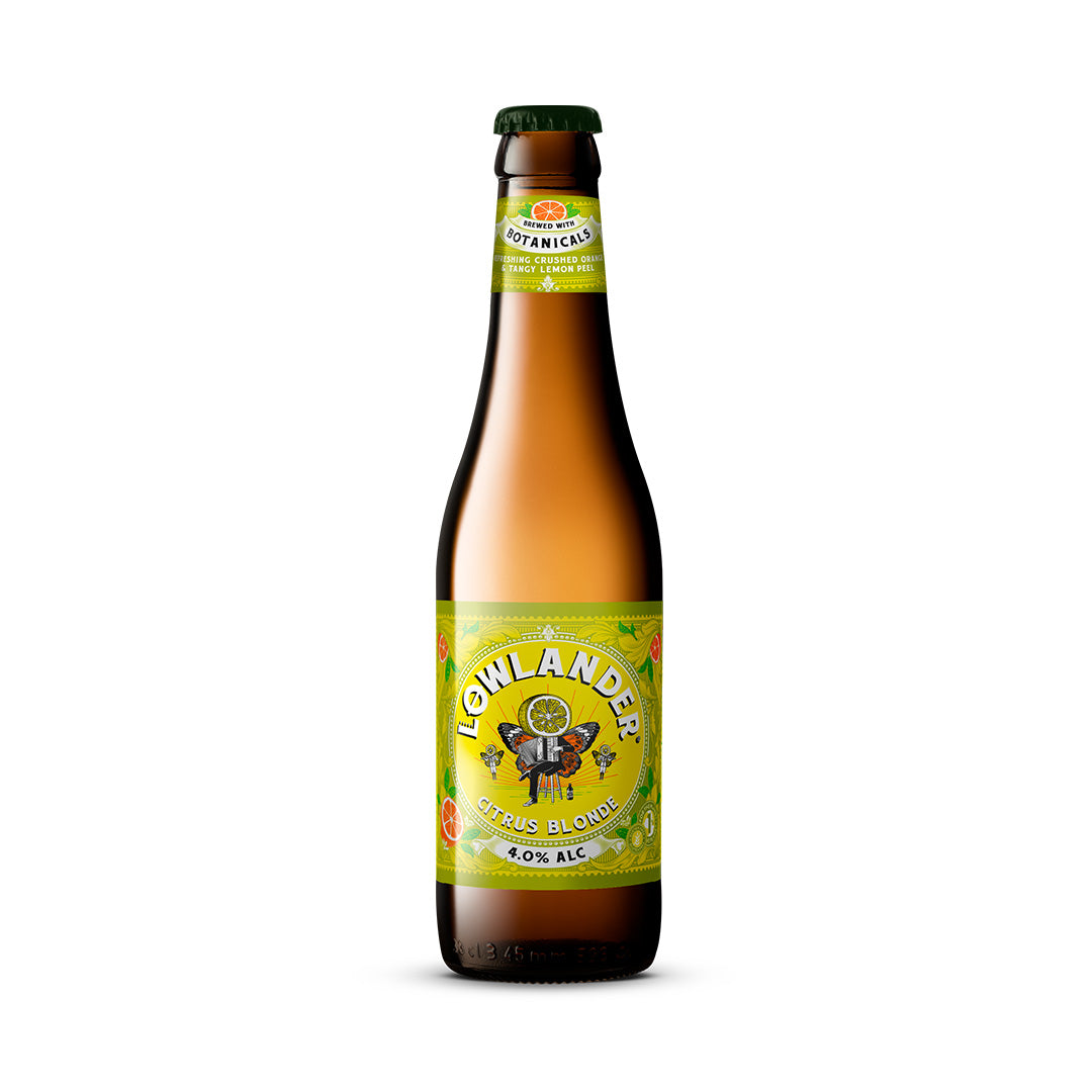 Mildes und erfrischendes glutenfreies blondes Bier. Das Citrus Blonde von Lowlander Beer ist ein glutenfreies blondes Bier, das mit zerstossenen Orangen- und Zitronenschalen botanisch gebraut wird. Es ist glatt und erfrischend mit einem spritzigen Zitrus-Finish. Es passt gut zu süssen Gerichten.