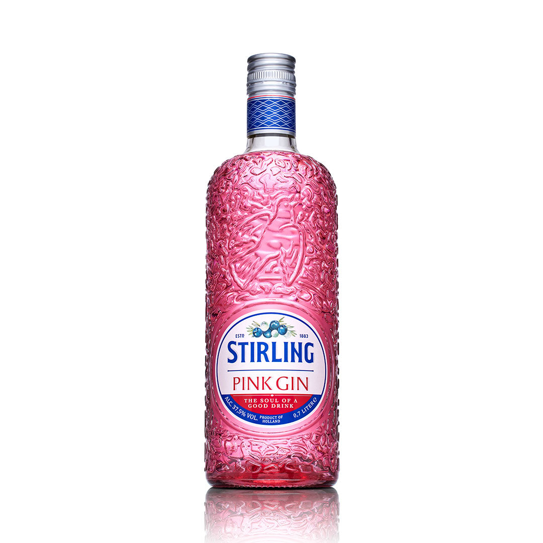 Der Stirling Pink Gin ist das Geschwisterchen des Stirling London Dry Gins. Die doppelte Destillation mit Wacholderbeeren, Engelwurz, Koriander und verschiedenen anderen Kräutern in Kombination mit Erdbeeren und Himbeeren macht den Stirling Pink Gin süss und doch frisch.